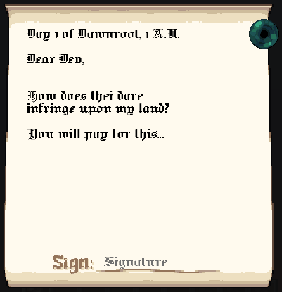 - Writing: Open the scroll UI and write your message exactly as you want it delivered.